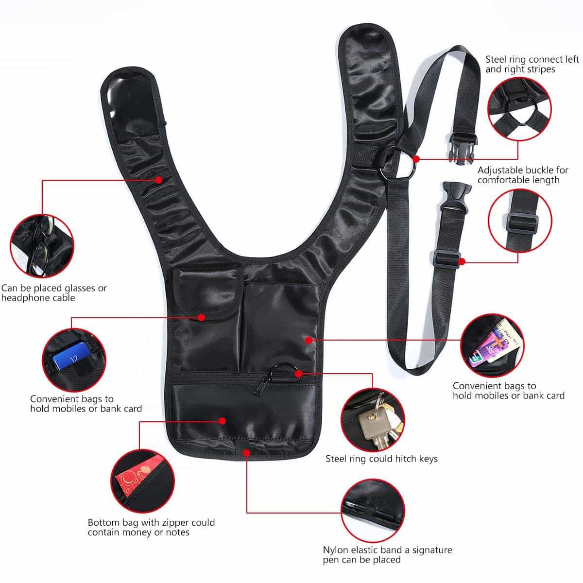 Anti-Theft Hidden Shoulder Holster can be used to safely store, organize and protect your iPad, iPhone, MP3, keys, ID card, credit card, wallet and other small personal belongings.