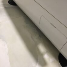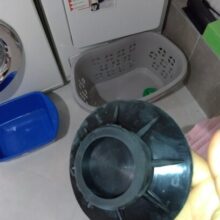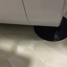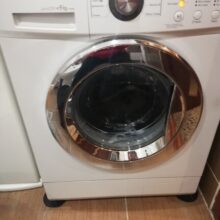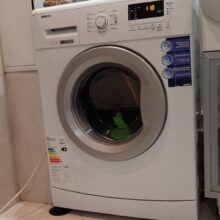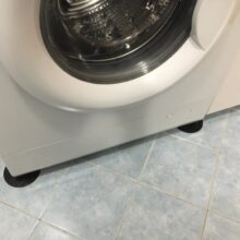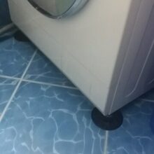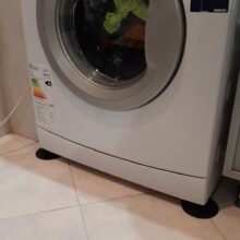 The tiled floor is well joined, probably the washing machine will not move from the place. There is a smell of rubber.