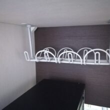 Perfect for storing small items under the table, such as electric mixers, plugs and wires