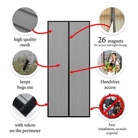Unlike cheap ones, this upgrade magnetic screen door uses fiberglass mesh material featuring getting more air ventilation, more natural light.