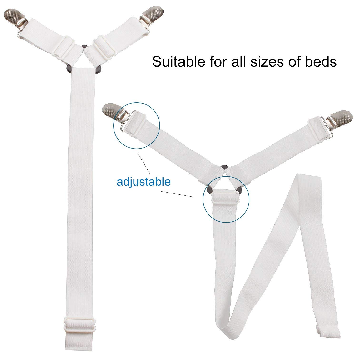 EASILY ATTACHED: Attach this suspender to your bed sheet using the clamps and keep it nice and tight
